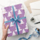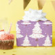 lila och rosa i hand plockade och papper julomslutning. En söt och chic Julgran-design med rosa och vitt träd på en lila bakgrund med vit snö, stjärnor och snöflingor i en sömlös designperfekt för att omsluta presenter.