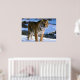 Snö Loving Tiger-design. Den har en stark tiger som står i ett vitt plåster i snö. Den har ingen rädsla alls.