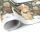 Söt gult, gyllene hämtare som leker i snö mot fält stenvägg med vild