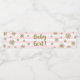 Vinterduschetikett för barn i Flicka med vattenflaska för barnavård i ljusa rosa och vita rand mönster med festligt guld snöflingor. Perfekt för en julklapp.