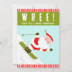 Lustigt skidåkande helgdagskort med tecknad Santa skier och roligt citat.