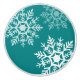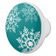 Den runda lådans knapp visar en vit snö-stjärna på en turkobakgrund.
