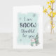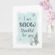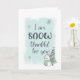A snögubbe dekorerar kortets framsida med talesättet "Jag är snö tacksam för dig"