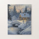 Gå in i en pikturesk vinterscen med det här charmingpusslet. Ett mysigt hustru som täcks av snö ligger i en skog i gräs träd, medan ett mjukt bäck flyter under en klok bro. Serenlandskapet, som är täckt av att lyssna på snö, framkallar säsongens värme och magi. Perfekt för pusslentusiaster som söker en fredlig och givande utmaning, denna konst fångar skönheten hos en tyst vinterdag.