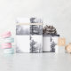 I vågrät svartvit foto av snö-täckt träd glömmer två evergreener på den lämnat kanten om ram flera kortare torra decibel-träd som alla täcks av snö. Himlar ovanför dem är vitt. Digitalt, svart och vitt foto. Copyright © 2011 Claire E. Skinner. Alla höger reserverade.