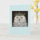 Snowy uggla med cedarhatt på kortet