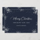 Sparka blåa och silver-julkort med modern typsnitt och med snöflingor och nedfallande snö mot blå bakgrund. Anpassa enkelt dessa blå och silver-snöflingor med din familj namn och ett budskap.