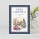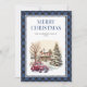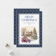 Blått buffelplatta God jul-kort med en vinterscen med ett regnerat lastbil.