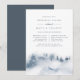 Elegantens inbjudan till vintermiddag för förnyad inbjudan innehåller en vattenfärgad bakgrund som skildrar ett snöbergslandskap som är prickat med gräs träd silhouettes i mistnyanser av blått och grått. Anpassa med din ceremoni och middagsdetaljer i chic blue-grått-brev. Ett vackert val för elegant vintersemestrar i bergsområden, skogar eller snömiljöer.
