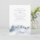 Vinterkallelsen till förlovningsfesten i elegant har en vattenfärgsbakgrund som skildrar ett snöbergslandskap som är prickat med gräs träd silhouettes i mistnyanser av blått och grått. Anpassa med din förlovning firande-information i chicens blå grått-bokstäver. Ett vackert val för vinterförlovningsfester i elegant i bergsområden eller skogsmiljöer.