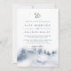 Vinterbröllopsinbjudan i elegant har en vattenfärgsbakgrund som skildrar ett snöbergslandskap som är prickat med gräs träd i mistfärgade nyanser av blått och grått. Anpassa med dina bröllop-detaljer i klassiska bokstäver som accentueras med calligraphy-skript och som är täckta med ditt monogram eller duogram gått med av ett dekorativt skript-ampersand. Ett vackert val för vinterbröllop i elegant i bergsområden eller skogsmiljöer.