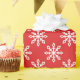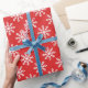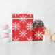 Den här bilden har en pulserande röd bakgrund som är försedd med en mängd vitt snöflingor i olika komplicerade utformningar. Snöflingor är jämnt fördelat över bakgrunden och skapar ett festligt och visuellt tilltalande mönster.