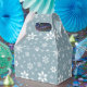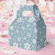 Cute, roligt och ljummet mönster med vit snöflingor på grått- blå bakgrund. Modern gåva och trendig, perfekt för snö älskare i ditt liv.