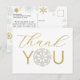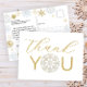 Dela din tacksamhet med detta eleganta vinterkort med glänsande guldbokstäver och en delikat snöflinga i mitten. Dubbelsidigt design med plats för ett hjärtligt meddelande och adress, vilket gör det både vackert och praktiskt. Perfekt för vinterbaby shower, högtidsfiranden och små snöflingefiranden. Koordinerar smidigt med hela Snowflake Baby Shower-kollektionen för ett sammanhållet Winter Wonderland-tema.