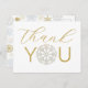 Dela med dig av din tacksamhet med detta eleganta vinterkort med glänsande guldbokstäver och en delikat snöflinga i mitten. Den dubbelsidiga designen har plats för ett hjärtligt meddelande och avsändaradress, vilket gör det både vackert och praktiskt. Perfekt för vinter-baby shower, högtidsfiranden och små snöflingefiranden. Koordinerar felfritt med hela Snowflake Baby Shower-kollektionen för ett sammanhängande Winter Wonderland-tema.