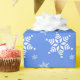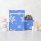 Cute, roligt och aktningsvärda mönster med vit snöflingor på blå bakgrund. Modern gåva och trendig, perfekt för snö älskare i ditt liv.