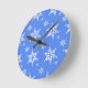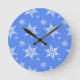 Snöflinga Mönster, Vit Snöflingor, Snö, Blått Rund Klocka