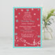 Du kan enkelt anpassa texten på detta unika röda, turkosa eller akblå, och vita snöflingor och noter vinter jul julfirande inbjudan. För att ändra texten, använd alternativen för anpassning. Eller, för mer omfattande textändringar, inklusive ändringar av teckensnitt, teckensnittsfärg, teckenstorlek och/eller textplacering, använd alternativet anpassa. Ändra texten och använd detta för alla andra vinter- eller högtidsrelaterade speciella tillfällen inbjudan.