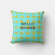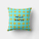 Snöflingemönster Vintertypografi Blå Guld Kudde