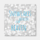 Ett vintercitat "Snöflingor är kyssar från himlen" skrivet i en modern typografi över en ljusbakgrund med ett mönster som består av vit snöflingor och gnistor.