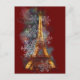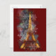 Den här vackra postkortsdesignen i Paris, Frankrike Eiffel Torn, har ett konstnärligt upptag på Eiffel torn. Eiffel Torn är belyst och glöd omgiven av vackra himlar färg och snöflingor.