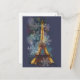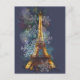 Den här vackra postkortsdesignen i Paris, Frankrike Eiffel Torn, har ett konstnärligt upptag på Eiffel torn. Eiffel Torn är belyst och glöd omgiven av vackra himlar färg och snöflingor.