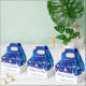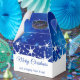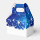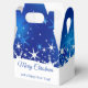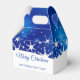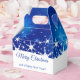 Snöblå illustration av God jul med trendig snöfall med vitt och blått snöflingor.
