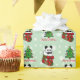 Den förtjusande och busiga pandaen ler i den Santa strumpan. Den färgrika och roliga julen som slår in papper för Panda, fläktar!! Snowflakebakgrund. Du kan skräddarsy text! Lycklig och gullig Pandatecknad som skapas av Naomi Ochiai från Japan.