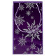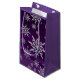 Söt, vitt snöflingor är utspridd över en underbar, lila bakgrund på den här presentpåsen både fram och tillbaka. Det här är ett underbart sätt att ge ge mindre gåvor till familj och vänner.