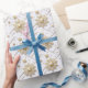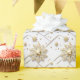 Ett vackert geometriskt sömlöst mönster i Faux guld och vitt på vilket en snöflinga med blommigt med en runda prick i mitten ramas in av tunt geometriskt linjer och litet snöflingor. Denna moderna men minimalistiska elegant och det minimalistiska upprepandet av mönster är idealiskt för vinter- och julfester, funktioner och party. Lägg till lite chic till din gåva med den här skräddarsydda designen.