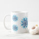 Den här designen har snöflingor i vitt och blått färg. Snöflingor är på en vit bakgrund. En underbar gåva till alla som kärlek snö. Gör en underbar gåva eller lägg till den i bordsprogramvaran för säsong.