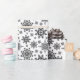 Snöflingor mönster slår pappert. Svart snöflingor på vit förpackning papper. En sömlös mönster av snöflingor i olika former och former gör denna tidslängd, klassiska och traditionella inslagning papper. En vinterdesign i elegant, minimalistisk och enkel. Snöflingor i en illustration som passar Julhelgen, festliga evenemang och jul. Denna pappra omslutning passar mest tillfälle under vintersäsongen, både jul och födelsedagar år efter år. Finns i olika storlekar och i kombinationer med färg.