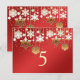 Vit och guldfärgad snöflingor på ett rött Bordsnummer för vinter-bröllop.