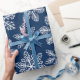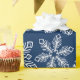 Snöflingor mönster. Sömlöst mönster med fluffy white snöflingor på blå bakgrund.