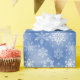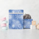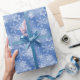 Fin vitt snöflingmönster på en skimrande blå bakgrund.