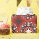 En vacker röd bakgrund omgiven av bubblor och snöflingor i popkonst stil
