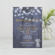Inbjudan till den eleganterna vinteruppvärmningen party/BQ-snyggten på mörk blått barrträ med en samling vita blommor från baby-utandningsluften i vas, i snöflingor gräns och i nylon i ljus. Du kan välja att anpassa det ytterligare genom att ändra typsnitt och färg på text. — Inbjudan är lämplig för elegant land sommargrillar/party. — Kontakta mig om du behöver hjälp!