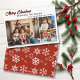 Fira julhelgen med en smula elegans genom att använda det här julkortet rött och vitt med snöflingor och tre familjefotografier. Perfekt för att visa dina omhuldade minnen kombinerar det här kortet festlig charm med personlig värme. leenden och glädje med nära och långt älskade. Beställ i dag att skapa varaktiga helgdag.