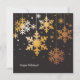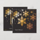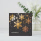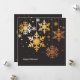 En vacker julkort med fina, gyllene snöflingor som hänger i natten. På baksidan finns fler snöflingor och ditt favoritfoto i en guldram.
