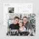 Det här söta och fantasifulla glada högtids julkortet har en festlig ramöverläggning av vita snöflingor med vit text för att anpassa över ett anpassningsbart familjefoto. Hitta matchande föremål i julhögtidens Snöflinga Kollektion.