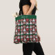 Cute-snögubbar i hattar och halsdukar, som är sammanflätade med vita blommor och grenar mot gröntens bakgrund, skapar en roligt som är perfekt på den här helgdag till säcken. Anpassa med ditt namn i ett grönt-band överst.
