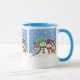 En vacker ringsignal till mugg med en färgstark familj snögubbar att fira vintern. © ArianeC Illustrations