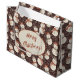 Roligtens neutralt: Julton mönster med mellå leende krämhaltiga snögubbar i terra cotta amaro röd hattar och scarfs på en varm nedfallande chokladbrun bakgrund med linda ritade blommor och holly. Det finns en annan version av den här presentsäcken utan God jul.