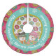 Säg God jul på finska med den här färgstarka, roligt-träd-kjoren som innehåller snöflingor på shock rosa, en rad akvablåblå, snöflingor på vitt, ett par snögubbe som bär hattar, scarfar och morotnäser, några vita snöflingor och vit text som lyder Hyvaa Joulua!