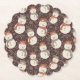 Roligtens neutralt: Julton mönster med mellå leende krämhaltiga snögubbar i terra cotta amaro röd hattar och scarfs på en varm nedfallande chokladbrun bakgrund med linda ritade blommor och holly. Det här är ett fast mönster. Du kan ändra mönster:s storlek och placering och lägga till en egen text. God jul!