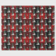 Cute snögubbe i snöflingor med hjort på rött och svart buffel.