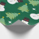 Grönt Julgran med snögubbar mönster papper julomslutning. Cute illustration av Julgranar och snögubbar. Underbar december som slår papper till jul. Cute Julgran och snögubbar mönster som är pappra för presenter.