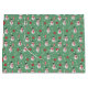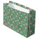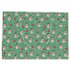 Snögubbar i sjalar och top hat, som är sammanflätade med röda julprydnader och vita, runda snöflingor skapar en söt och charmerande presentväska med ett vintage utseende.