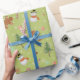 Snögubbar, polkagrisar, pepparkaksgubbar och Julgranar på gröntens bakgrund.