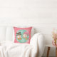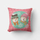 Snögubbarnas Rosa- och Blå helgdag- kudde, så söt och färglös, har ett vitt snöflingor på rosa bakgrund med en akvblåcirkel med vita prickar och varje sida har ett leende snögubbe par med hatt, scarf, morot och snöflingor!